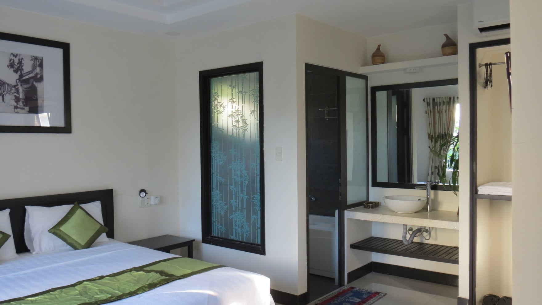 - Phòng tắm riêng trong phòng với bồn tắm và vòi sen